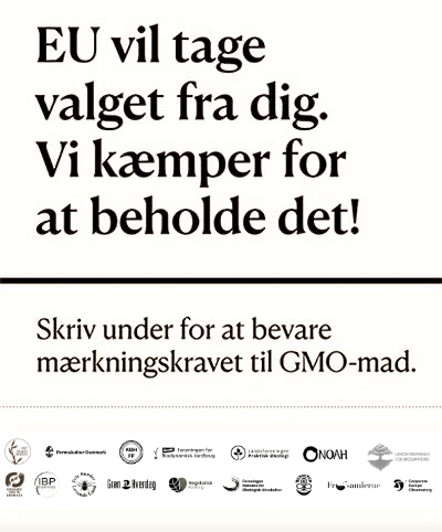 Vi samarbejder med mere end 200 grønne organisationer i Europa for at bevare økologers og forbrugeres ret til GMO-fri frø og mad. Det er afgørende for jordbrugere, fødevarevirksomheder, butikker og forbrugere, at vi beholder muligheden for at kunne fravælge GMO-produkter på grundlag af åben information og mærkning.